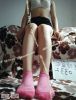 粉色条纹棉质短袜,所有棉质的短袜都会穿去跑步流汗的奥~