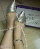 超级正点女人味儿的真皮女士太空银色高跟皮鞋