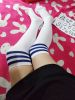 可爱系 学生条纹长筒棉袜 蓝白色~