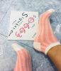 极臭系列の文艺粉红条纹短棉袜