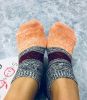 极臭系列の撞色橙加灰短棉袜