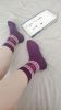 紫色中腰棉袜,脚脖子有花纹,主人的袜袜不臭哦,含在嘴里是独特的汗香~~