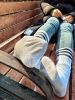 酸臭『彩虹条纹白棉袜』静静地穿,全酸臭臭的味道真的超级棒!~原味丝袜|袜类臭短丝袜
