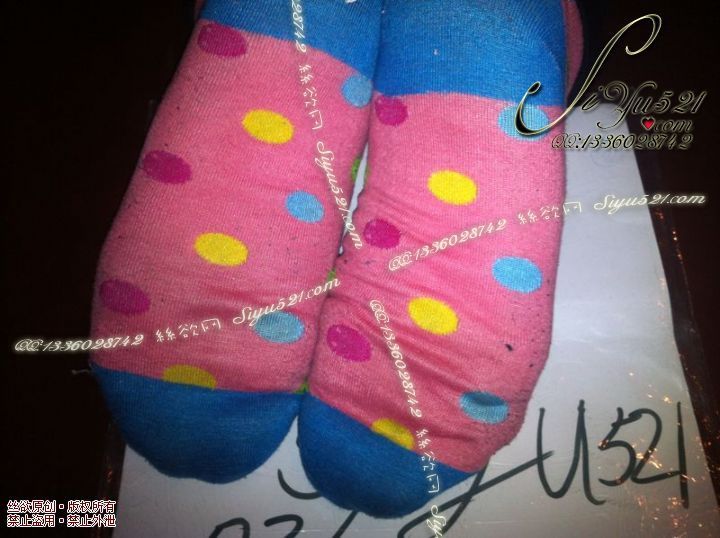 致命臭(此活动MM随机,不能指定)——2013-4-10日实拍顾客订购的1双棉袜,汗脚妹超重口味(棉袜),不可选择MM,免费附带无水印高清收购足底实拍图。